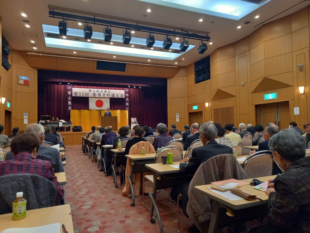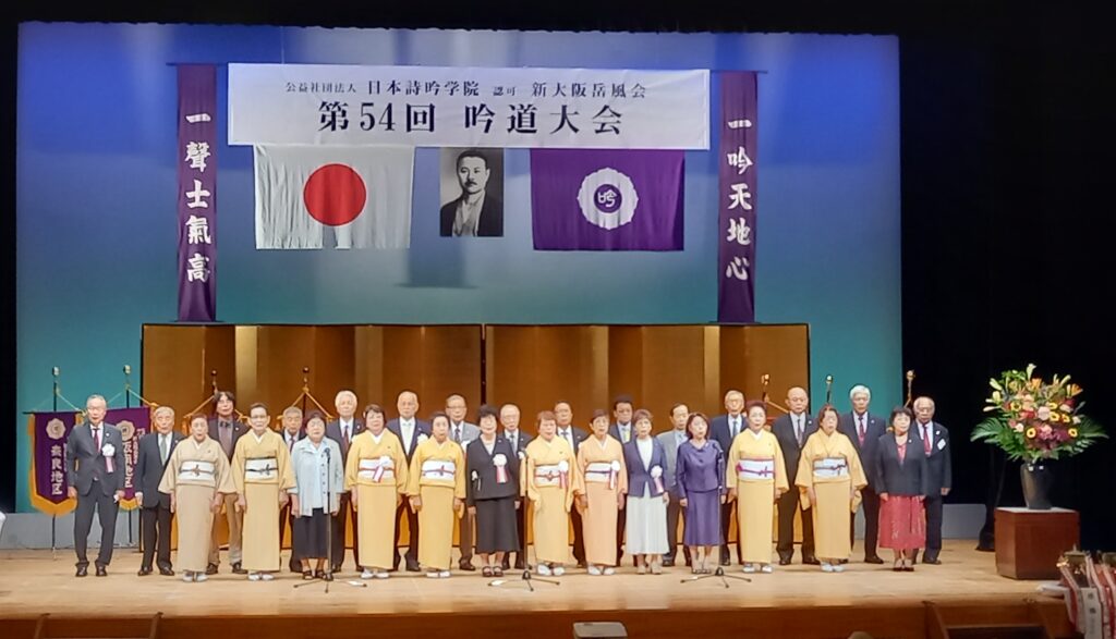 大会当日には、奈良ブロックの辰巳晃岳先生とエールを交換し、緊張しつつも落ち着いて吟じる事が出来ました。吟者一人ひとりに盛大な拍手が送られ感動しました。 このような立派な晴れの舞台を経験出来た事を励みにし、今後更に吟力向上に努めたいと思います。