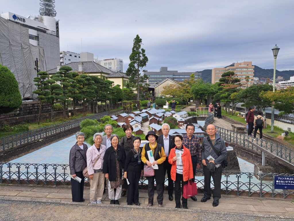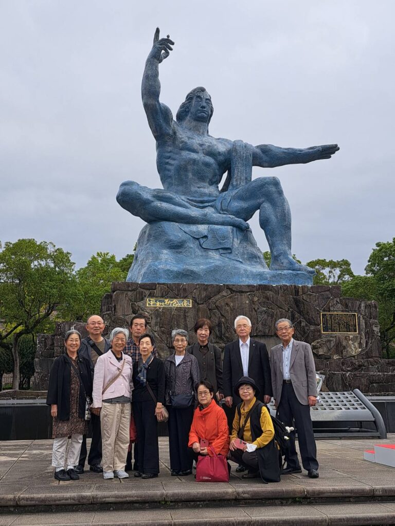 私達も合吟に出させていただけると聞いて毎朝、公園で「生田に宿す」を練習致しました。近畿地区11の会の皆さんとの大合吟出場はよい経験になりました。 最後の一日は観光地巡りで平和公園・グラバー園・眼鏡橋・出島など20年前とは違った異国情緒を感じました。長崎港の1000万ドルの夜景、中国の豪華客船、どこからでも見える稲佐山等楽しい思い出になりました。このような機会を頂き感謝しております。有難うございました