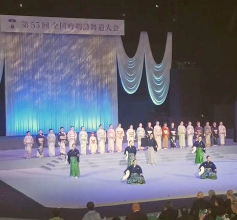紅葉も見事な令和7年11月11日、日本武道館において第55回全国吟剣詩舞道大会に新大阪岳風会から辻 岳蘭先生が特別企画吟剣詩舞の部に参加されました。