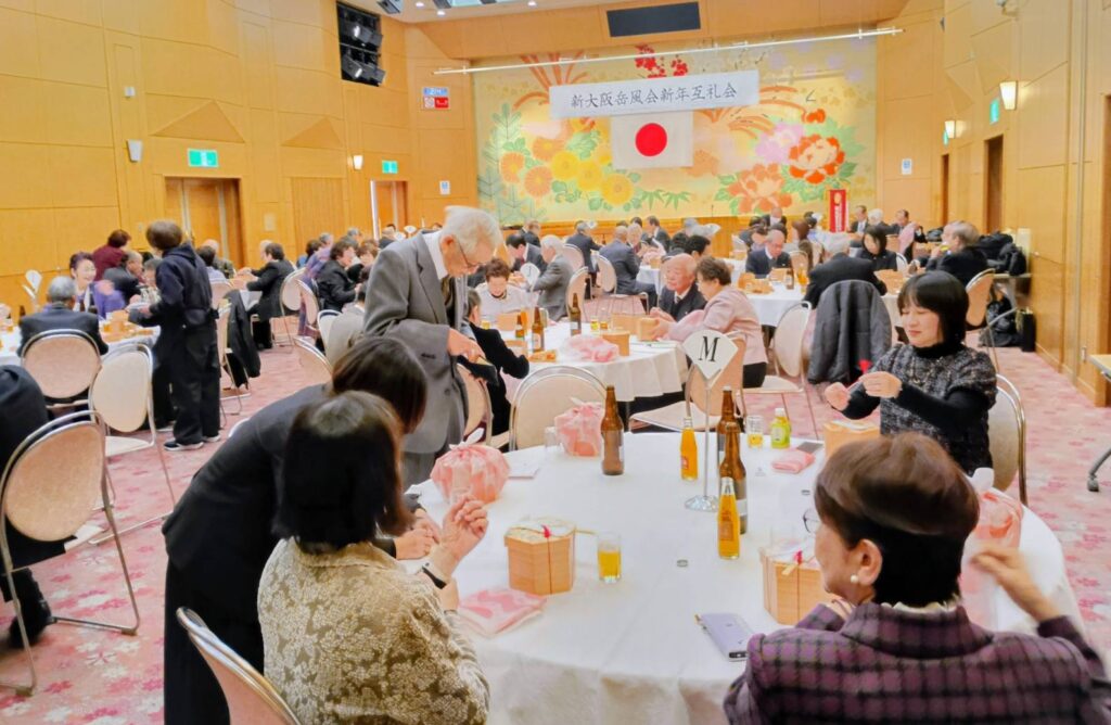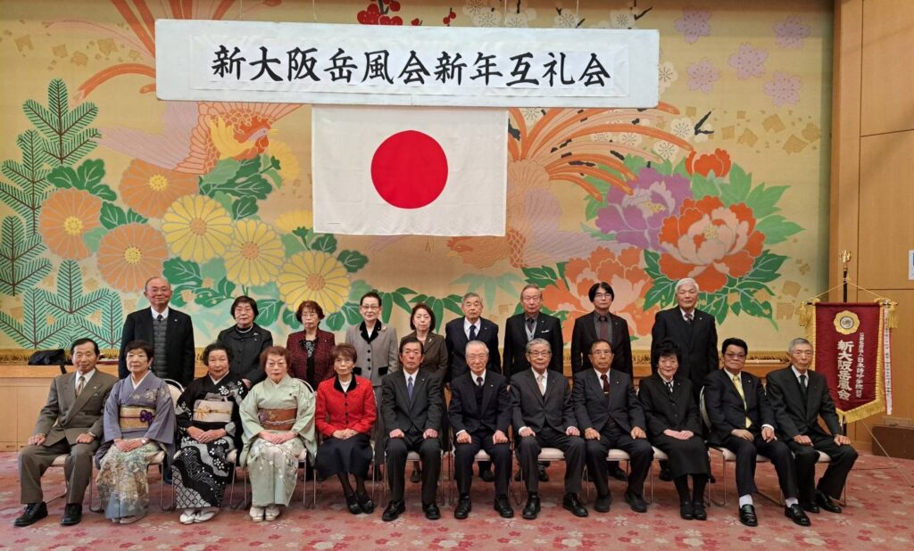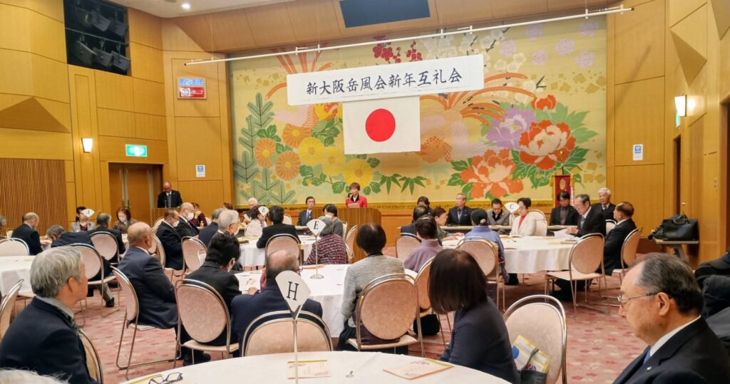 新年互礼会が此花会館で開かれ、本部・地区・支部の皆様らが一堂に会して新年の抱負を語り合った。参加者は新大阪岳風会への発展を誓い、和やかな雰囲気の中で交流を深めた。