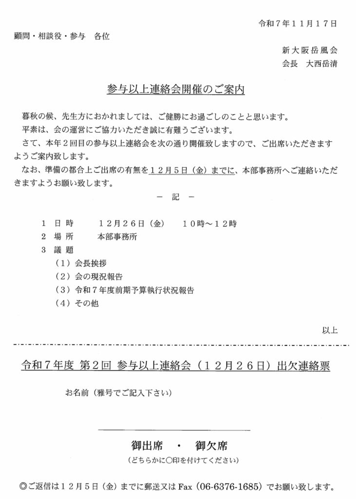 参与以上連絡会議開催のご案内