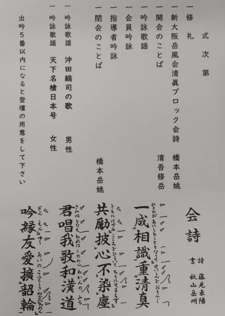 これは「独吟発表の機会を増やす事」と「支部間の交流」を目的とした肩肘の張らないアットホームな発表会です。