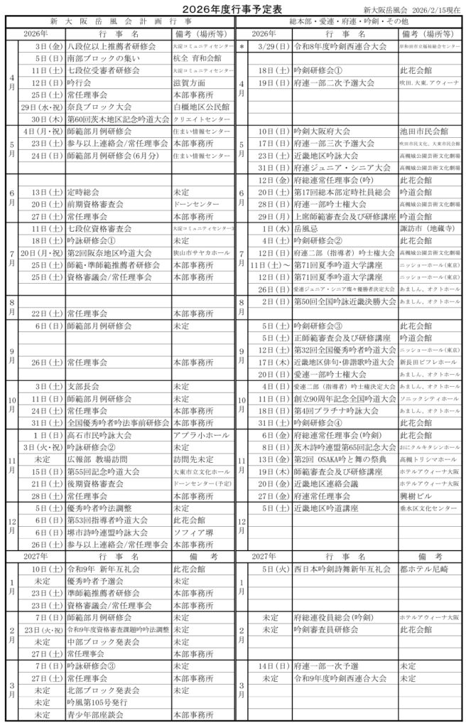 2026年度行事予定表